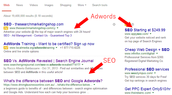 For new websites, however, paid advertisements can be a quick, easy way to attract an audience. With Google AdWords, for example, you can quickly target a specific search to display your own text ad--traditionally above or below organic results, or to the right side of the SERP.