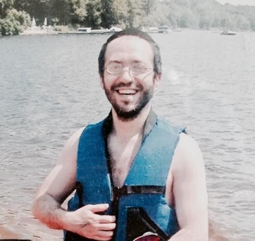 | A grainy photo from the early 2000s: a rare moment of leisure at the lake. |