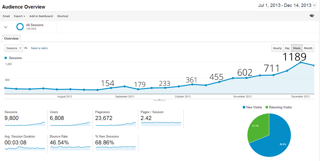 | An effective SEO campaign will reveal (first) an increase in website traffic. |